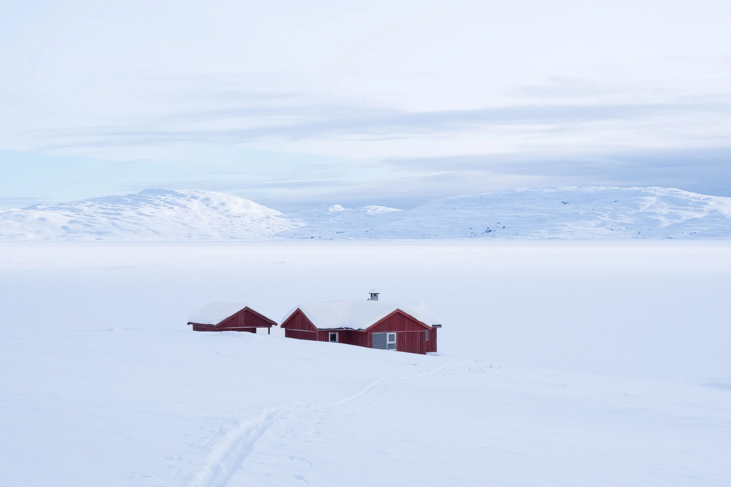 The primary construction of the walls and roof is executed in Cross-Laminated Timber (CLT). CLT was chosen to handle the very short construction season in the high mountains, where prefabricated elements offer a significant advantage regarding construction time. Simultaneously, the CLT elements provide the interior with a warm and unified character. The cabin is designed for a modern off-grid lifestyle; solar panels are placed on parts of the roof surface with an accompanying battery bank, along with provisions for high sanitary standards in the main building, in addition to a traditional outdoor toilet in the outbuilding.